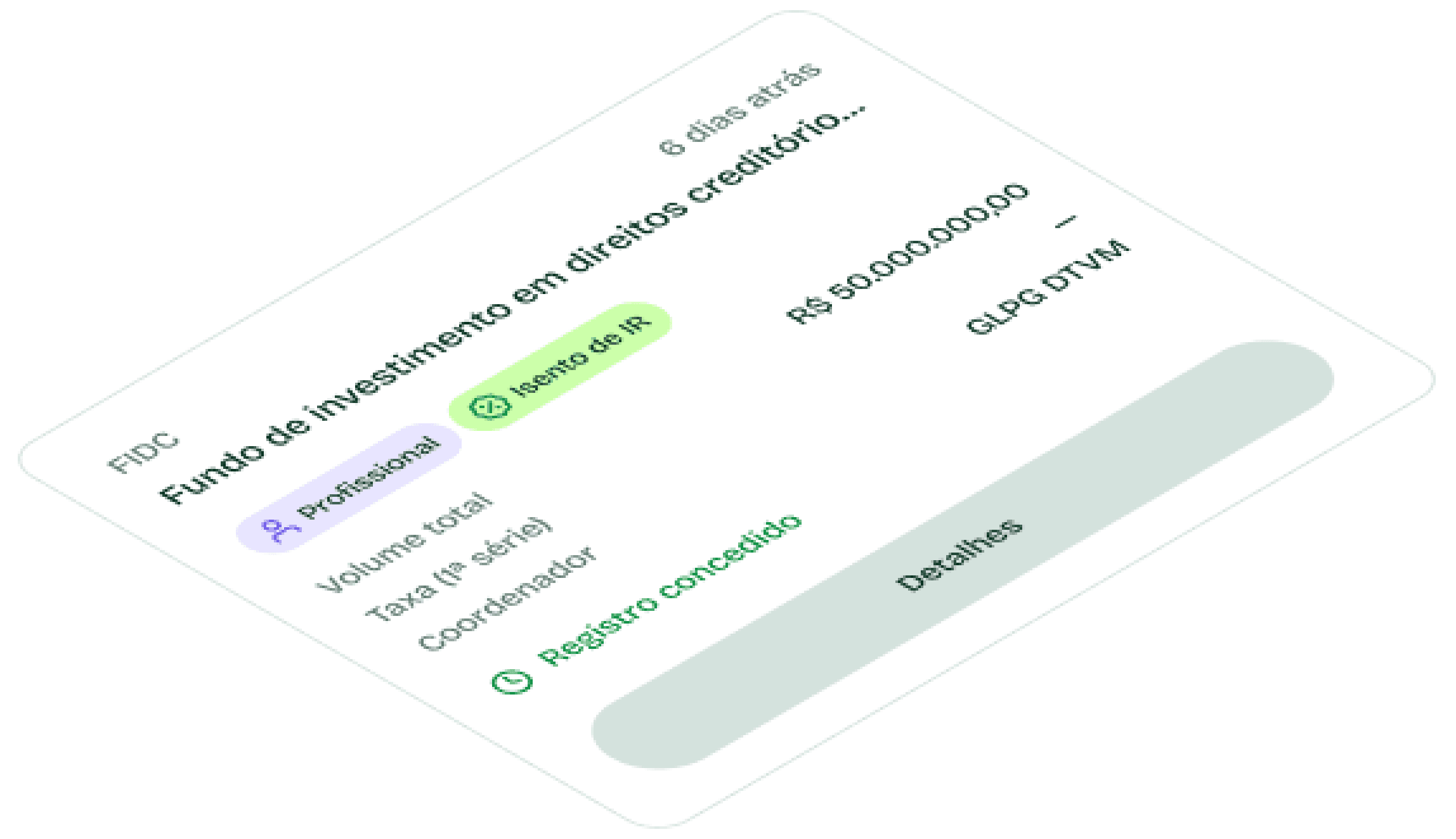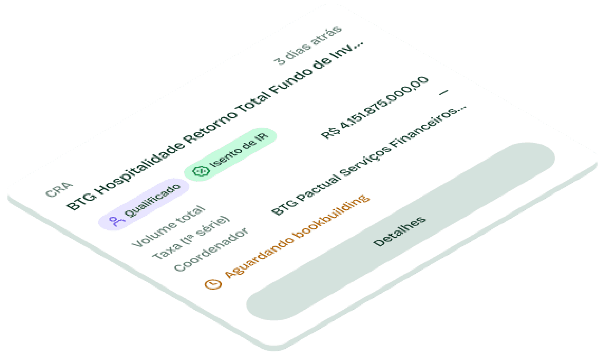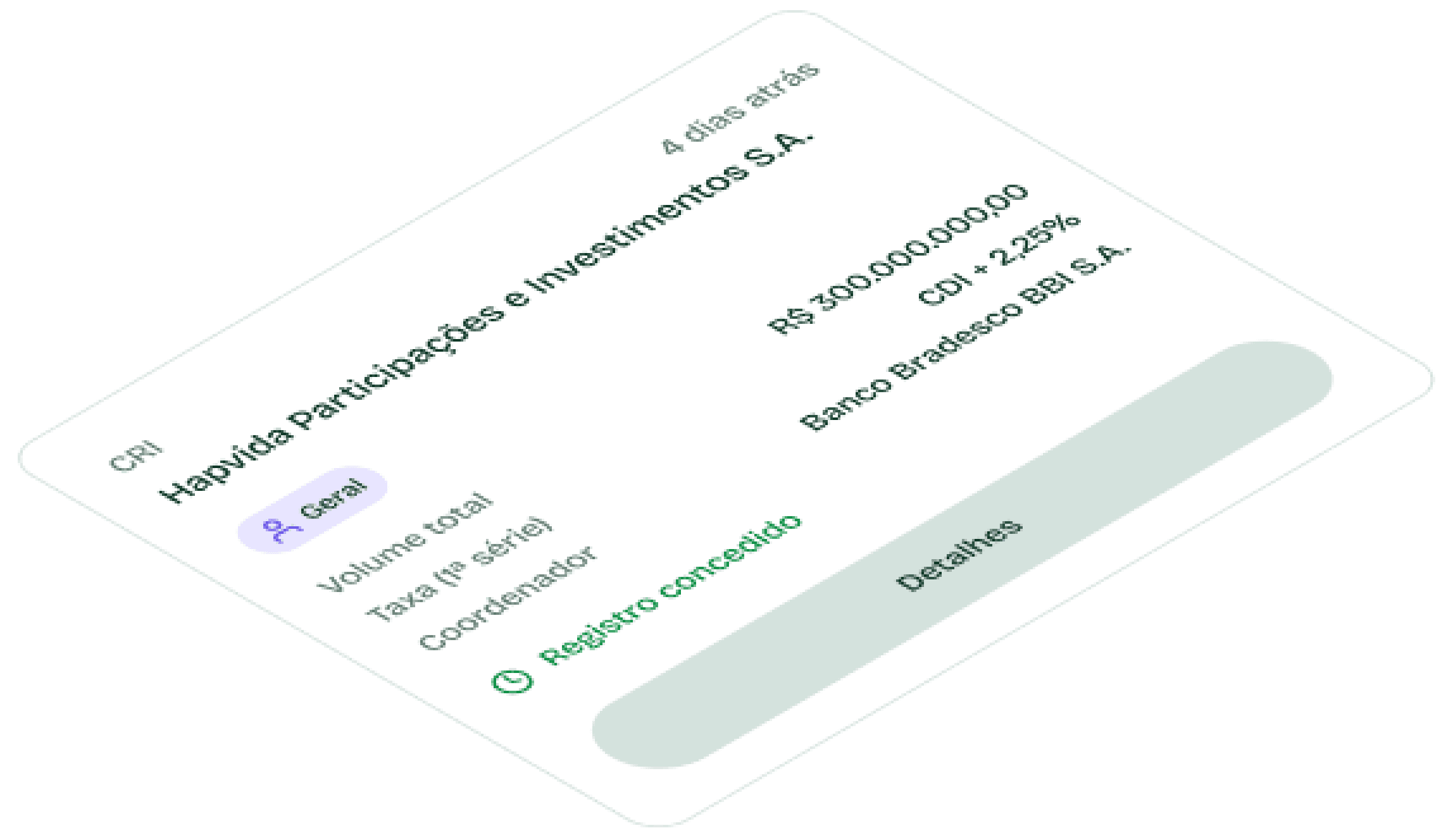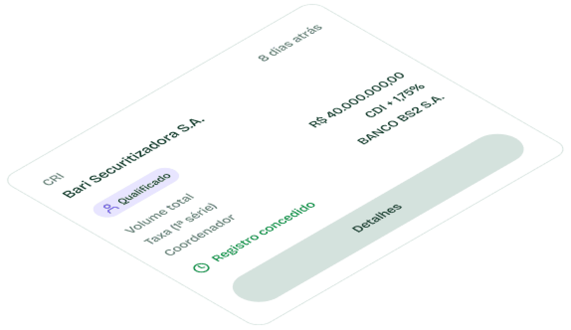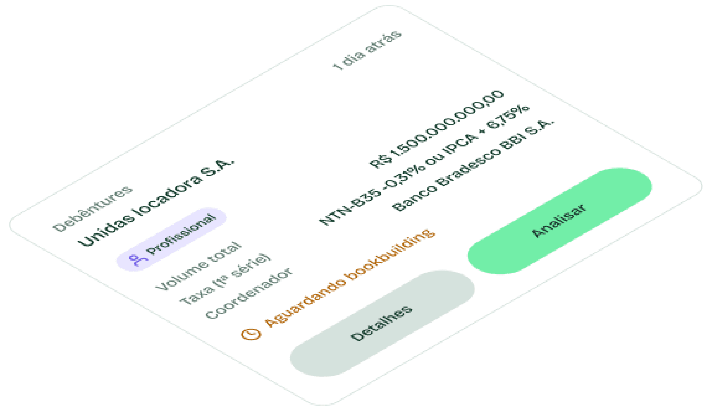 Dados do mercado secundário, ofertas do primário e acompanhamento de carteiras em um único ambiente. Menos abas, menos planilhas e mais consistência para comparar ativos com contexto completo.