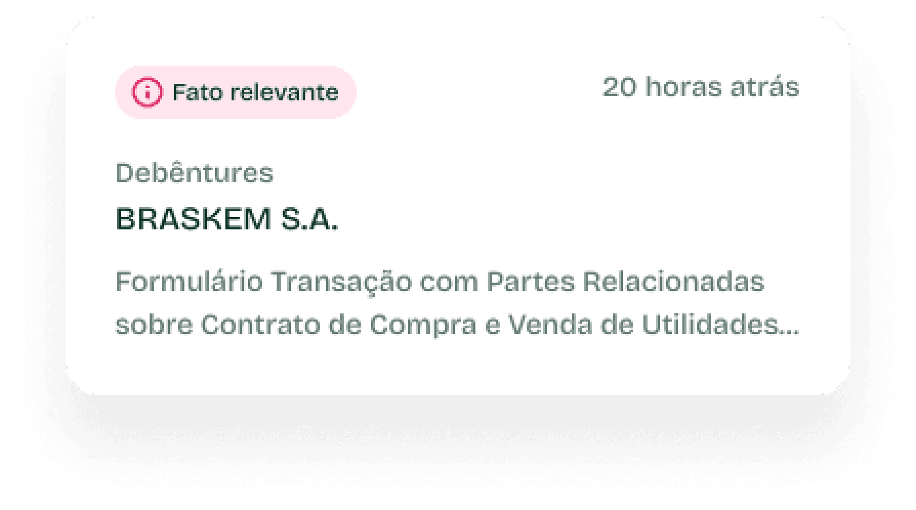 Carteiras salvas, alertas e comunicados automáticos por e-mail. O acompanhamento acontece no dia a dia, sem planilhas paralelas ou checagens manuais.