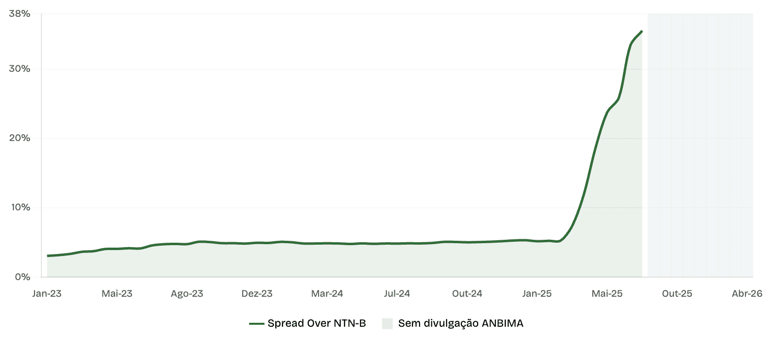 3,06% → 35,55% · IPCA + 8,60% · Venc. Set/2030 · Saldo: R$ 1,12 bi · Fonte: ANBIMA · Último dado: 2025-07-03